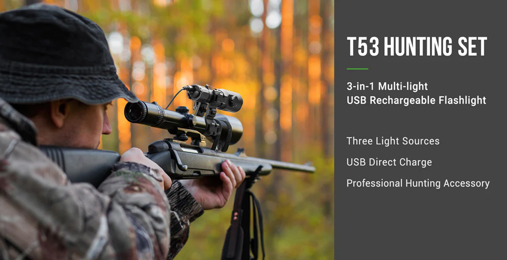 - Baterijska lampa T53, primenjuje tehnologiju izbora tri svetla: bela/760 lumena, zelena/129lumenai crvene/109 lumena.