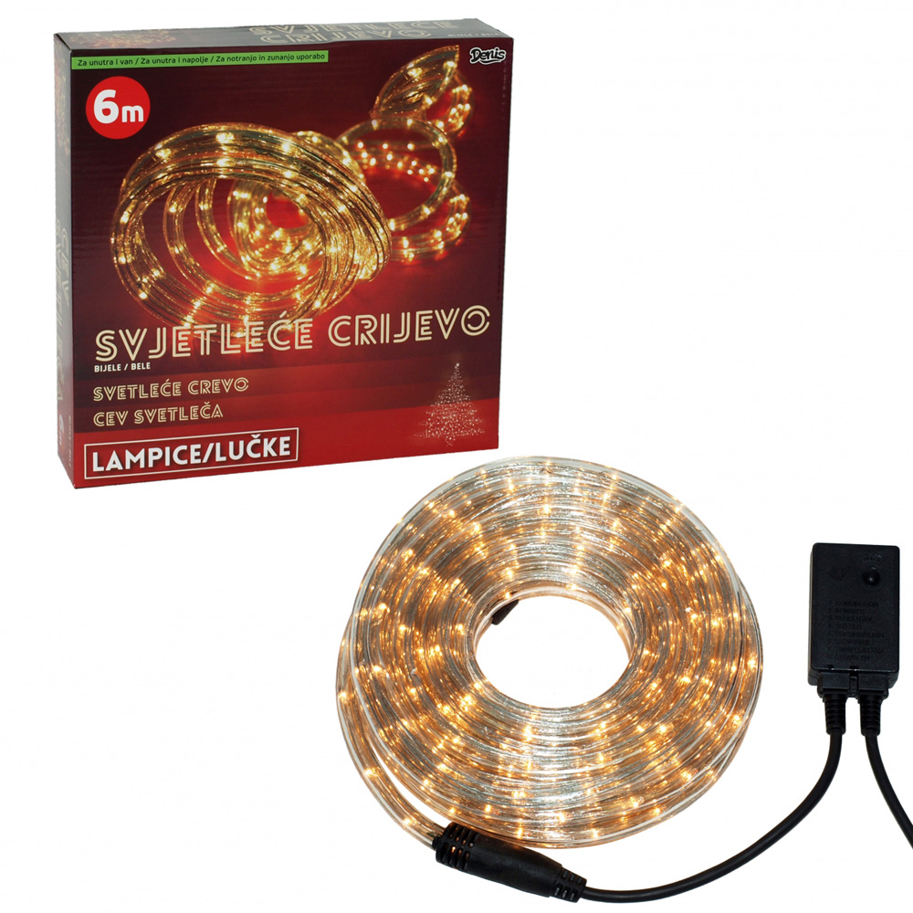 - Plastično crevo prečnika 12 mm sa belim lampicama, ukupne dužine 6 m.
