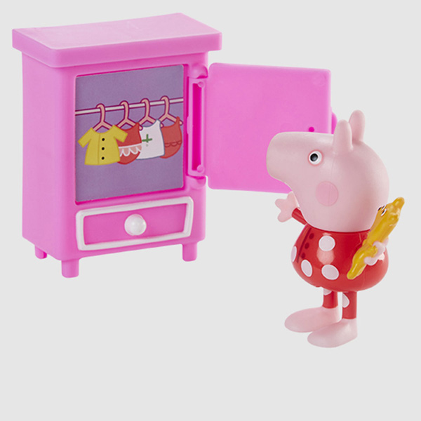 - Pepa set sadrži: figuru Pepa Prase, krevet, ormanom, radio, toaletni stočić i kućicu za lutke.