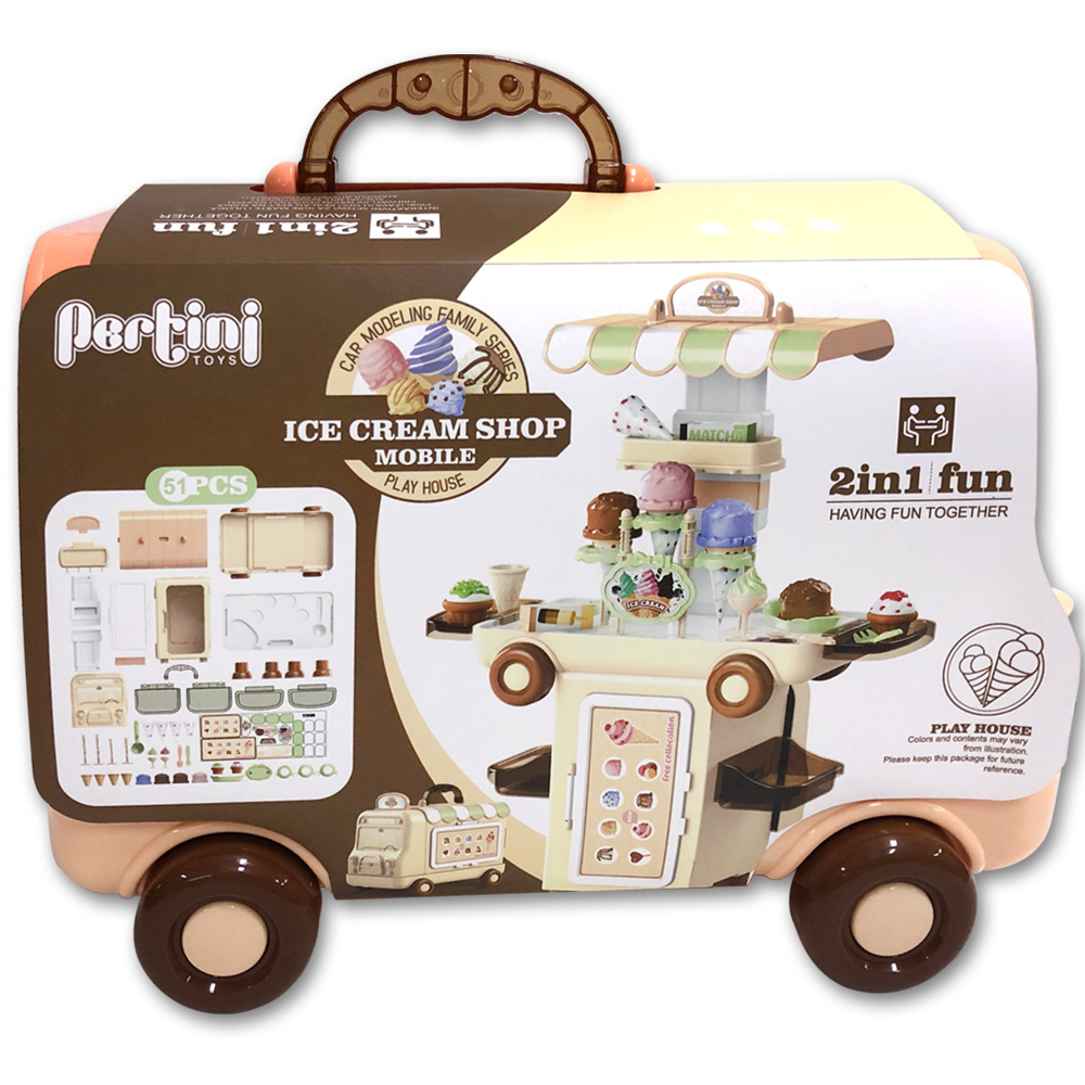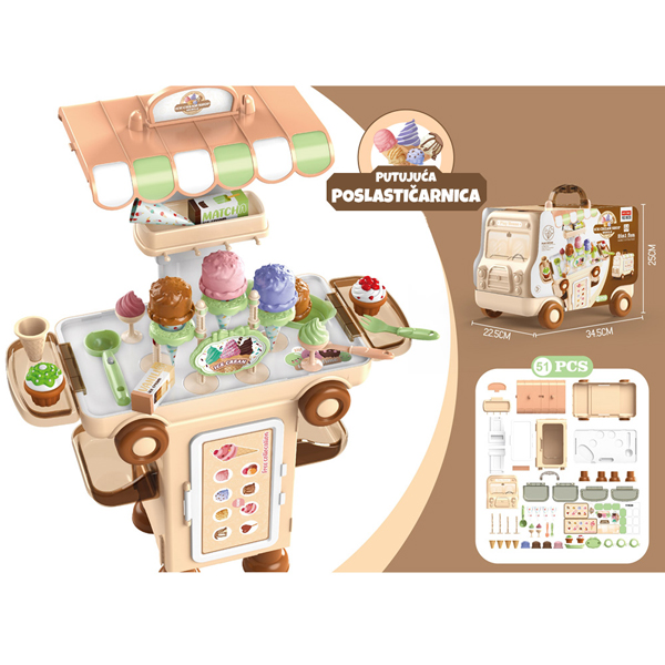 - Set putujuća ordinacija je u vidu putujućeg kofera na točkiće koji sadrži komplet aksesoara od plastike za male poslastičare poput sladoleda, kolačića i dodataka za pravljenje istih.