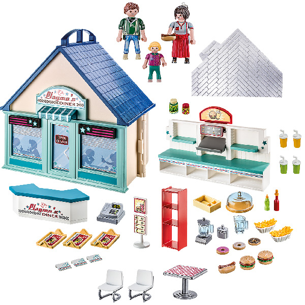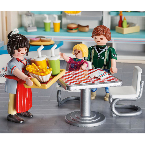- Set sadrži po jednu figuricu čoveka, žene i deteta, kasu, sto, stolice, poslužavnike, hamburgere, pomfrit, limenke, krofne i druge elemente, tj. ukupno 85 delova.