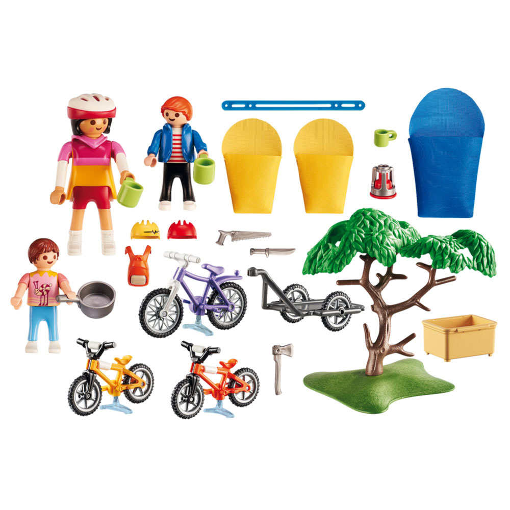 - Set sadrži jednu figuru odraslog i dva deteta, tri bicikla, prikolicu sa kontejnerom za skladištenje, šlemove, drvo i druge dodatke.