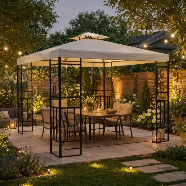 - Da li je ovaj paviljon vodootporan? Platno je dizajnirano da pruži primarnu zaštitu od sunca i lagane letnje kiše. Tokom jakih oluja i vetrova, preporučuje se sklapanje kako bi se sačuvala konstrukcija.