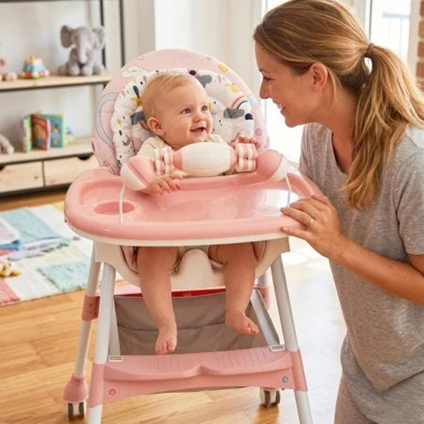 - Podesiva visina – Hranilica ima mogućnost podešavanja visine, što omogućava prilagođavanje različitim stolovima i prostorima u domu.
