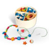 - Kreativni set sadrži perlice nizalice različitih boja i oblika i kanape za nizanje perlica, pakovane u drvenoj kutiji sa poklopcem