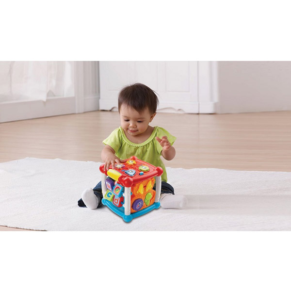 - Vtech igračka Aktiviti Kocka napravljena je od kvalitetne plastike sa pet različitih tipova igara koje se nalaze na stranicama kocke, dok su na šestoj strani dugmad različitih oblika sa životinjama i njihovim zvukovima.